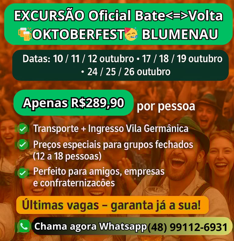 🍻Passaporte Bate-Volta Oktoberfest 2025 Blumenau! Garanta Agora!